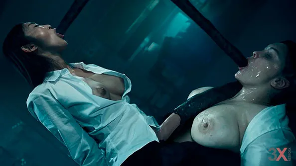 Lesbian Spit roast - Evil Woman, Mistress Kiro and Slave Girl Divine Eve